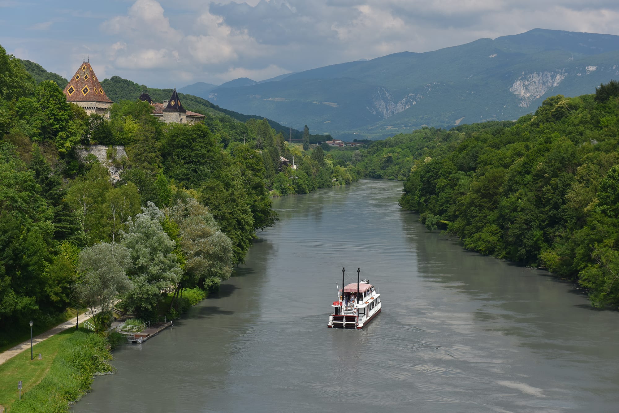 Le Bateau à Roue Royans Vercors propose une croisière commentée d’environ 1 h 30 au départ de Saint-Nazaire-en-Royans. À bord d’un authentique bateau à roue inspiré des steamers du Mississippi, les visiteurs embarquent pour une balade fluviale sur l’Isère, au pied des falaises du Vercors. Le parcours aller-retour permet de découvrir un patrimoine architectural remarquable, des paysages calcaires spectaculaires et une nature préservée visible depuis la rivière. Un seul bateau assure l’ensemble des départs programmés, offrant une expérience conviviale et immersive au fil de l’eau. Des croisières ornithologiques sont également proposées, permettant l’observation des oiseaux dans leur milieu naturel aux côtés d’un ornithologue passionné. Cette activité de tourisme fluvial allie détente, découverte environnementale et exploration douce, idéale pour une sortie en famille ou pour les amateurs de nature et de panoramas exceptionnels.