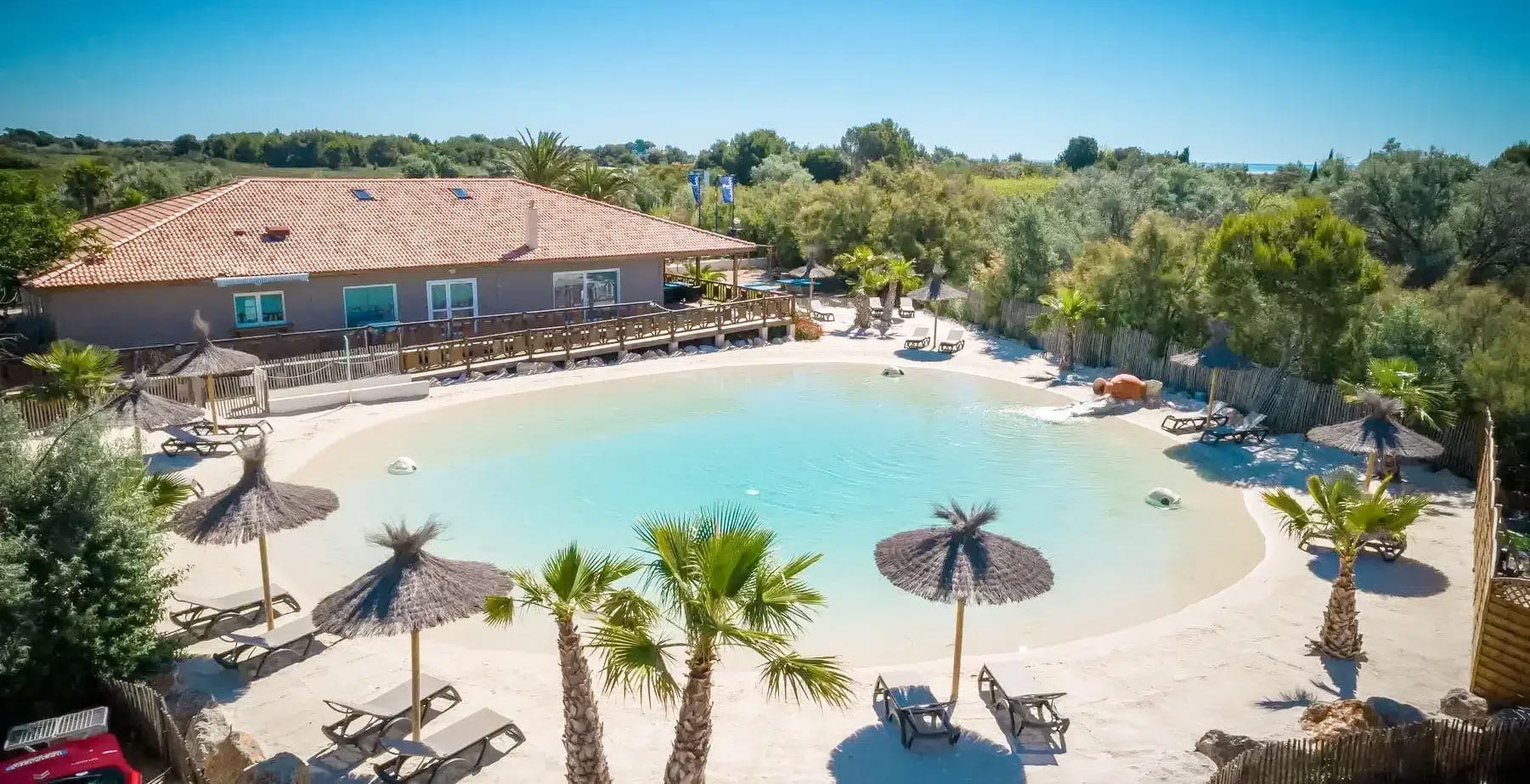 Au cœur du Camping Paradis Soleil d’Oc, vivez une expérience unique grâce à un espace aquatique exceptionnel de 2000 m². Imaginez-vous plongé dans une eau turquoise bordée de sable blanc, avec deux lagons de baignade pouvant atteindre 1,40 m de profondeur. Un véritable décor de carte postale où petits et grands profitent pleinement des joies de l’eau, entre détente et amusement en toute sécurité.